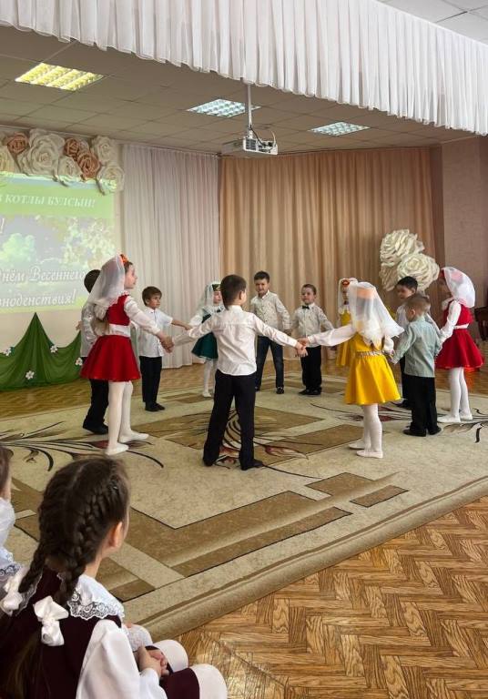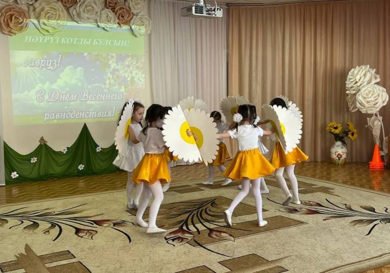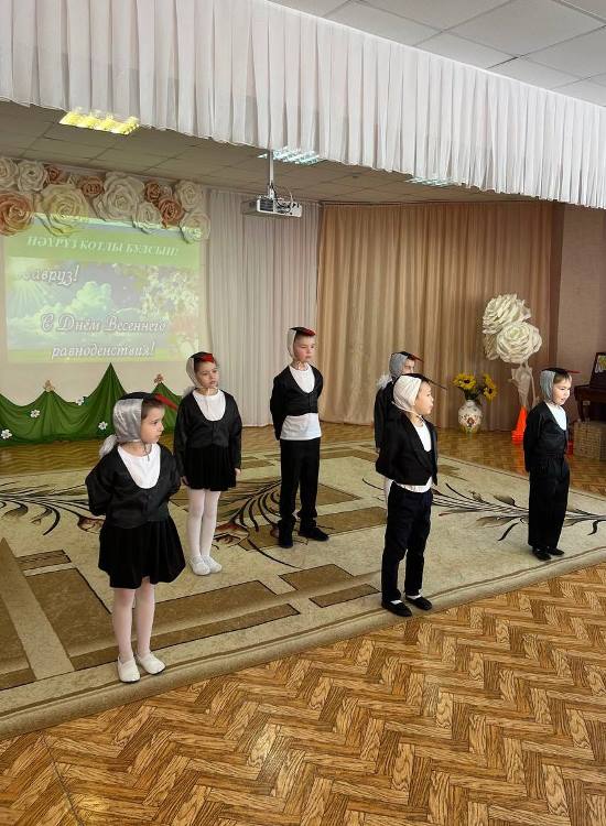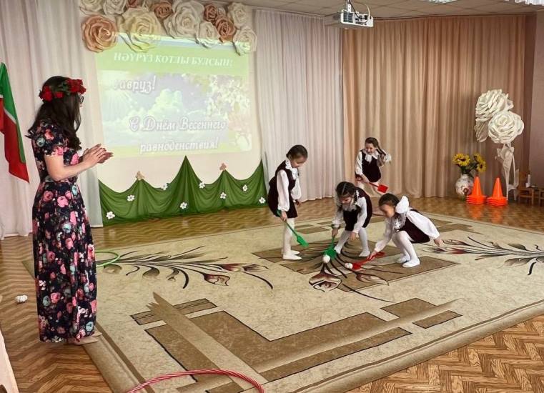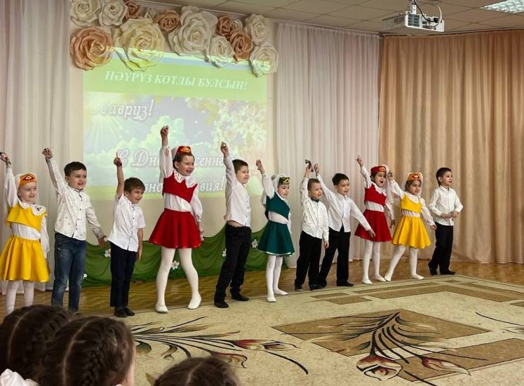 Опубликовано: 17.03.2023Сюрпризным моментом для всех стал приход главной героини Навруз, которую сыграла воспитатель татарской подготовительной группы №4 Нуреева Лейсан Халимовна. Она подготовила интересные конкурсные задания и предложила провести среди девочек соревнования на звание самой талантливой и трудолюбивой «Маленькой красавицы – Навруз». Участницы продемонстрировали сноровку и умения в играх «Көн һәм төн», «Карны эретү», а также, знания и находчивость в таких заданиях, как: «Ботка пешерү», «Гөлләр устерү». Увлекательно прошла ИКТ-игра со зрителями «Угадай птицу по голосу», где дошкольники закрепили знания о птицах родного края. В завершении праздника, юные артисты из подготовительных групп № 5 и №10 показали свои танцевальные способности, исполнив музыкальные номера «Ромашкалар», «Әйдә, дустым, биергә!».