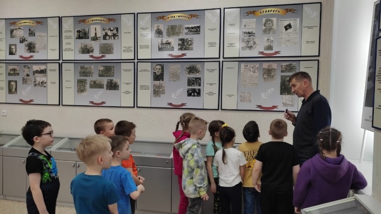 Ребята, затаив дыхание, слушали рассказ экскурсовода о Великой Отечественной войне, о героических подвигах земляков на фронте и в тылу врага, о боевых наградах, внимательно рассматривали экспонаты. Здесь представлены письма, документы, газеты, фотографии военных лет. Экспонаты музея вызвали большой интерес и восторг у детей.