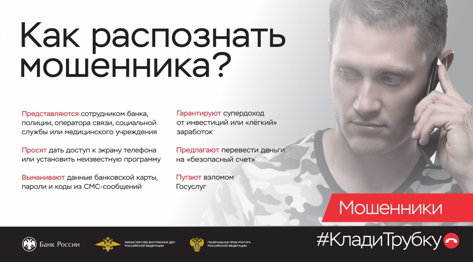 В целях предупреждения преступлений, совершаемых с использованием информационно-коммуникационных технологий, Генеральной прокуратурой Российской Федерации разработаны просветительские материалы в рамках новой информационной кампании «Клади трубку 2.0».
