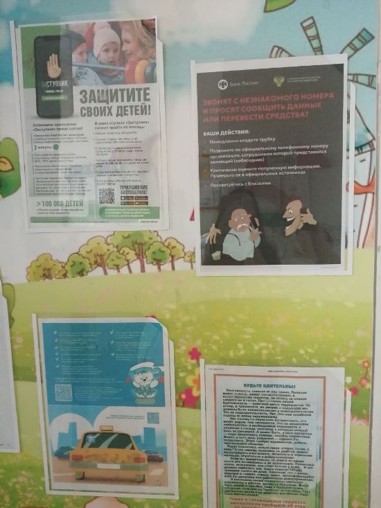 Информационные плакаты по противодействию финансовому мошенничеству, а также незаконному обороту наркотических средств с использованием информационно-телекоммуникационных технологий размещены на стендах и холлах детского сада, а также вручены родителям.