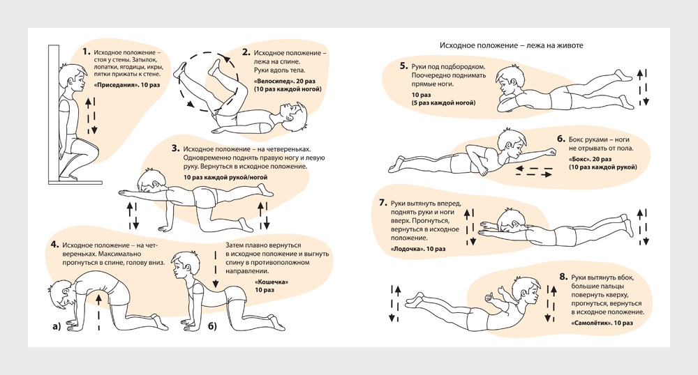 Активность: ежедневная зарядка, плавание (особенно полезно для спины), подвижные игры на свежем воздухе.