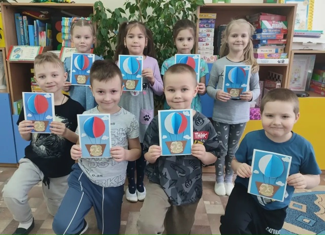С Днём Защитника Отечества поздравляют своих пап воспитанники подготовительной к школе речевой группы «Пчёлки». Дети смастерили открытки с воздушными шарами.