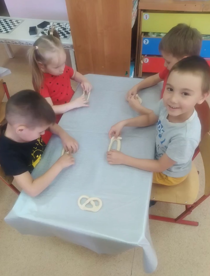 Пришёл черед самых увлекательных моментов: детки взялись за солёное тесто, превращая его в крендельки. ???? (Смотрите видео!)