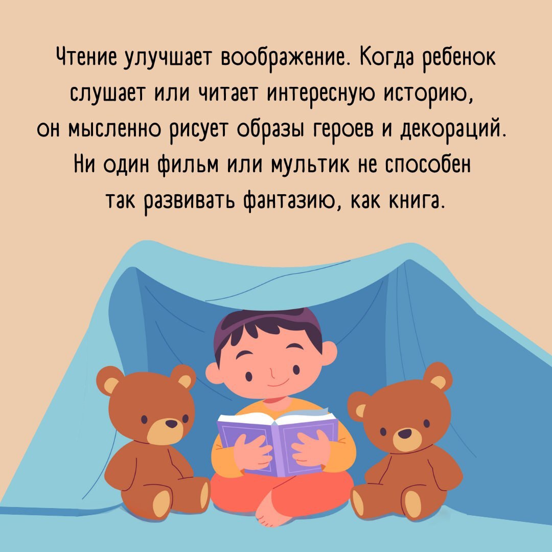 В этих карточках мы рассказываем, почему важно читать с детьми и как это влияет на их развитие.