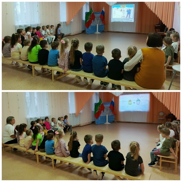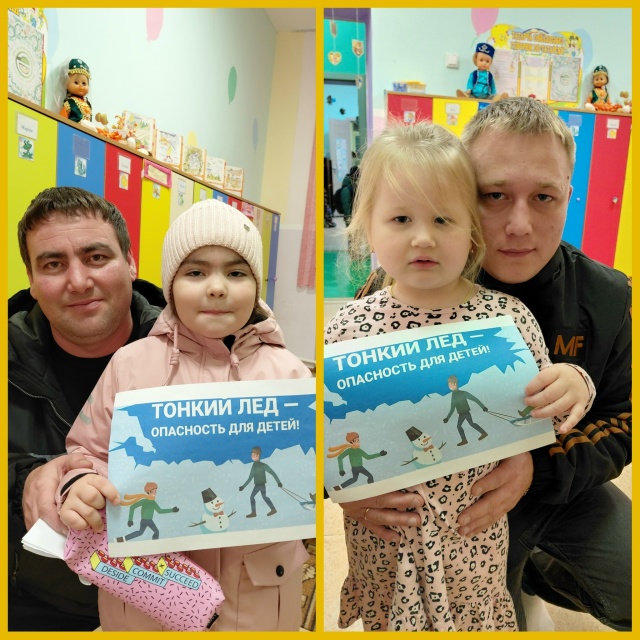 В группах провели беседы о том, как опасно ходить по тонкому льду. Дети приняли активное участие в обсуждениях, в ходе которых узнали, как образуется лёд, когда он становится опасным, и какие меры предосторожности нужно соблюдать. Рассмотрели иллюстрации и фотографии опасных ситуаций на льду и поиграли в игру «Правильно-неправильно». Так же прошёл просмотр анимационного фильма "Тонкий лёд".