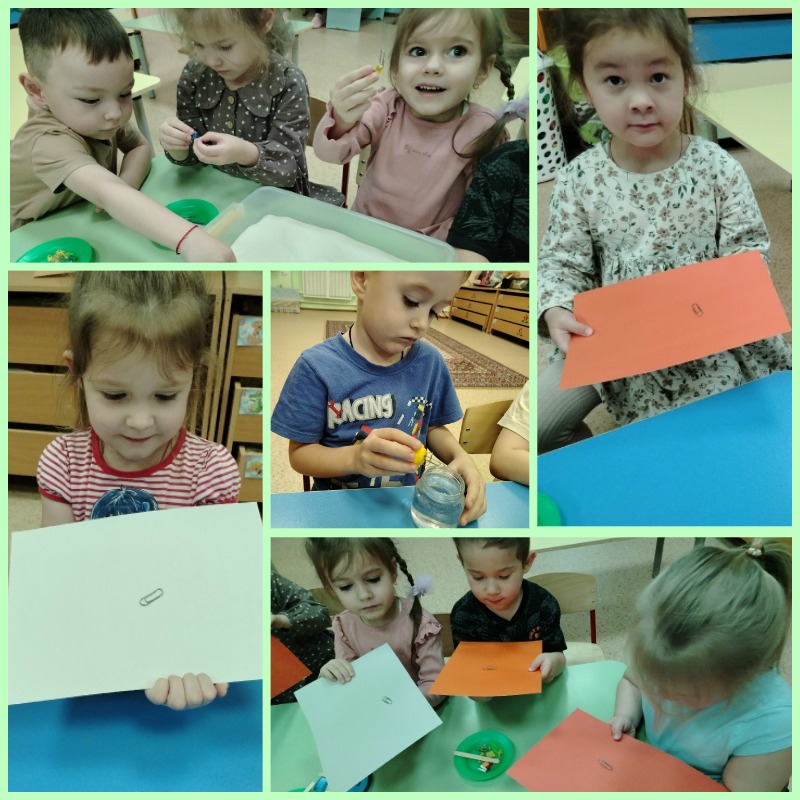 Вот и наши дети с восторгом принялись экспериментировать с магнитом: провели опыты «Всё ли притягивает магнит», «Сухие руки», «Кладоискатели», «Танец скрепок».