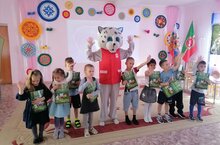 От «Движения Первых» по Бугульминскому району нашим воспитанникам были вручены: рабочие тетради «Путешествие начинается» и значки с изображением Барсика.