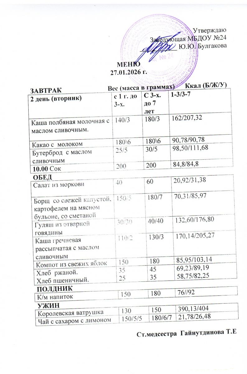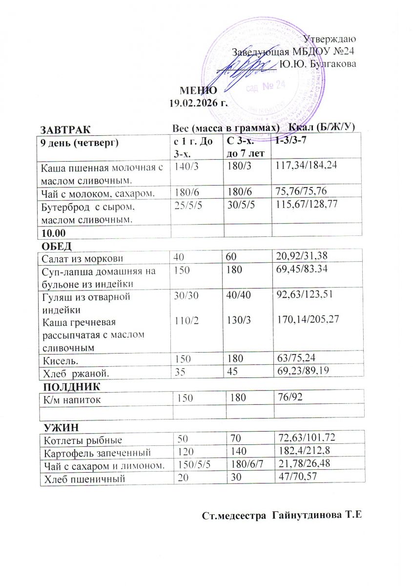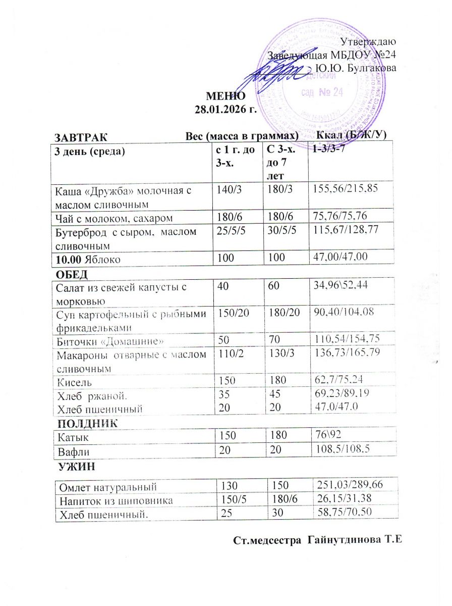 Питание осуществляется в соответствии с меню, утверждённым Заведующей Учреждением и старшей медицинской сестрой. Режим и кратность питания воспитанников и обучающихся устанавливаются в соответствии с деятельностью их пребывания в Учреждении и рекомендациями органов здравоохранения.