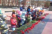 Дети старших дошкольных групп приняли участие в церемонии возложения цветов у мемориала Вечной Славы и на Аллее Героев.