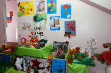 Родители и дети детского сада своими руками сделали поделки на тему «Этот день Победы!». Выставку поделок организовали в фойе детского сада.