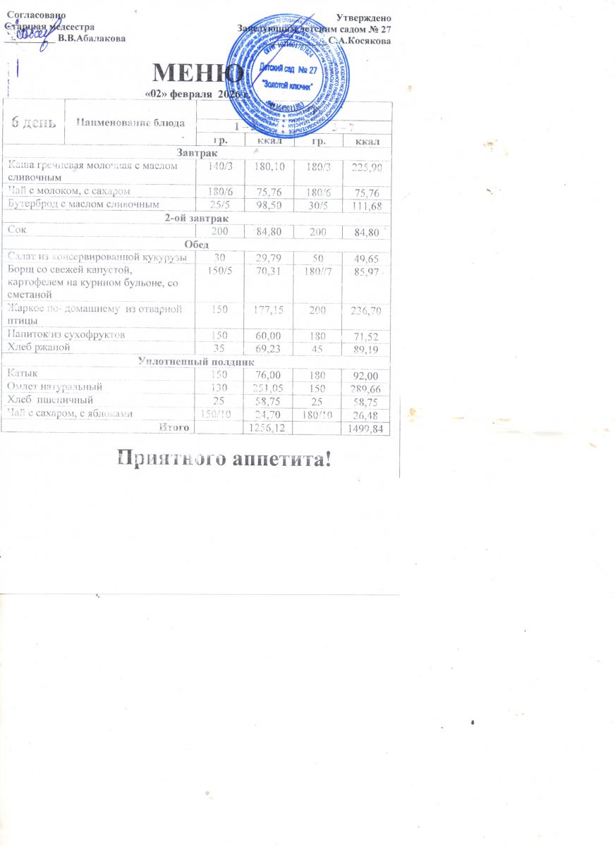 Старшая медицинская сестра Детского сада № 27: Абалакова Валентина Викторовна.