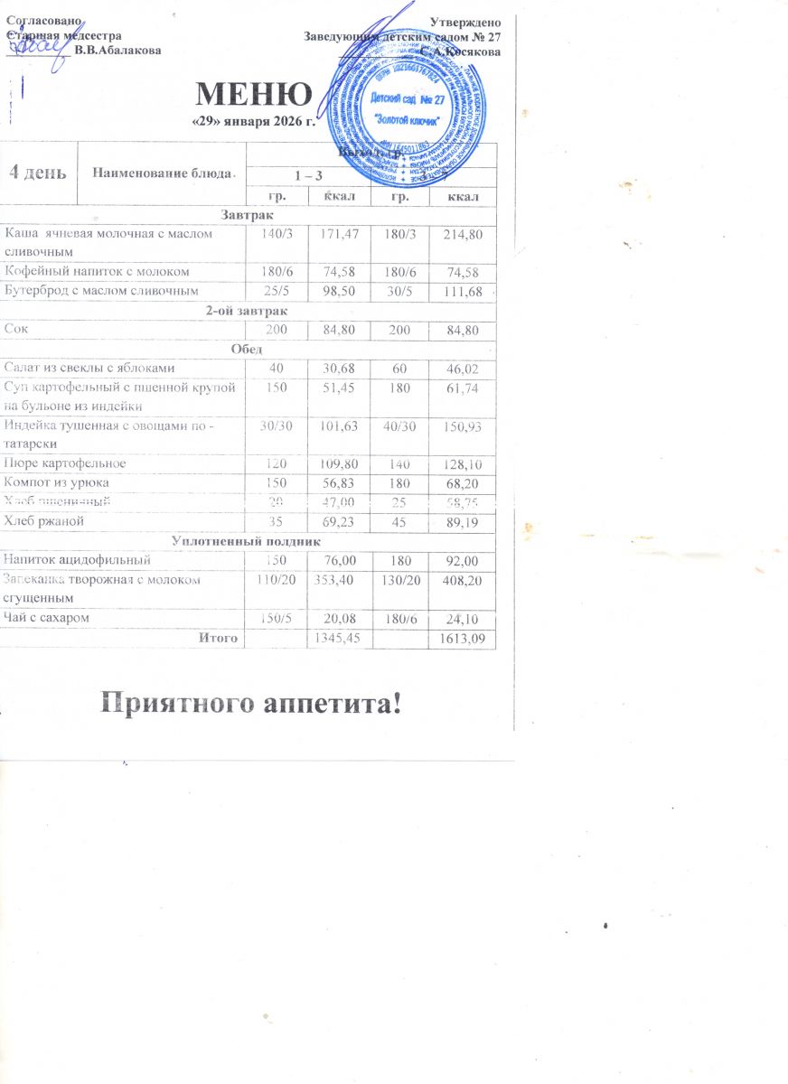 Примерное 10-и дневное меню с 12 - ти часовым пребыванием от 3 лет до 7 лет