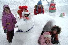 Воспитатели детского сада создали интересную развивающую предметно-пространственную среду для зимних прогулок на участках.