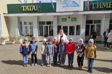 Сегодня в День Знаний, воспитанники подготовительной к школе группы, вместе с воспитателями были на экскурсии в татарской гимназии № 14 имени Хади Атласи. Там они увидели красиво одетых, с букетами цветов, выпускников нашего детского сада в роли первоклассников. Этот день для них был самый запоминающийся и долгожданный, ведь они впервые переступили школьный порог. Дошкольники с волнением и восторгом смотрели на первоклашек._____Бүген Белем көнендә, мәктәпкә әзерлек төркеме тәрбияләнүчеләре, тәрбиячеләр белән бергә Һади Атласи исемендәге 14 нче татар гимназиясендә экскурсиядә булдылар. Анда алар матур киенеп, чәчәкләр бәйләмнәре тотып, балалар бакчасынын беренче сыйныф укучылары ролендә күренделәр. Бу көн алар өчен иң истә калучан һәм озак көтелгән көн иде, чөнки алар беренче тапкыр мәктәп бусагасын атлап керделәр. Укучылар беренче класслыларга дулкынланып һәм сокланып карадылар.