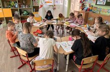Завершилось занятие творческим заданием — каждый ребёнок нарисовал свой любимый вид спорта.