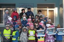 С самого утра в «Дельфине» царило настроение праздника, соучастия в чем –то важном. Ребята и педагоги (Поповченко Е.О. Сольцова О.Г.) во главе с заведующей Каримовой Р.М. и старшим лейтенантом полиции, инспектором по пропаганде БДД Гибадуллиной Г.М. провели акцию «Пристегни самое дорогое! Пристегнись сам!». Малыши встречали родителей и дошколят у самых ворот в детский сад со стихами, памятками, листовками, плакатами, конфетками.