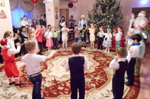 Любимым деткам в Новый годХотим мы пожелать:Пусть этой ночью к вам придетСтарик Мороз опять.Откроет сказка снова дверь,Веселье, смех подарит,И вспыхнет огоньками ель,И жизнь чудесной станет. -