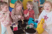Воспитатель 1 младшей группы группы вместе с ребятами подготовили почву, семена и лотки. Организовали и провели занятие: «Огород на окне».