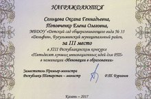 Наши педагоги - Сольцова Оксана Геннадьевна и Поповченко Елена Олеговна заняли III место в XIII Республиканском конкурсе "Пятьдесят лучших инновационных идей для РТ" в номинации "Инновации в образовании".
