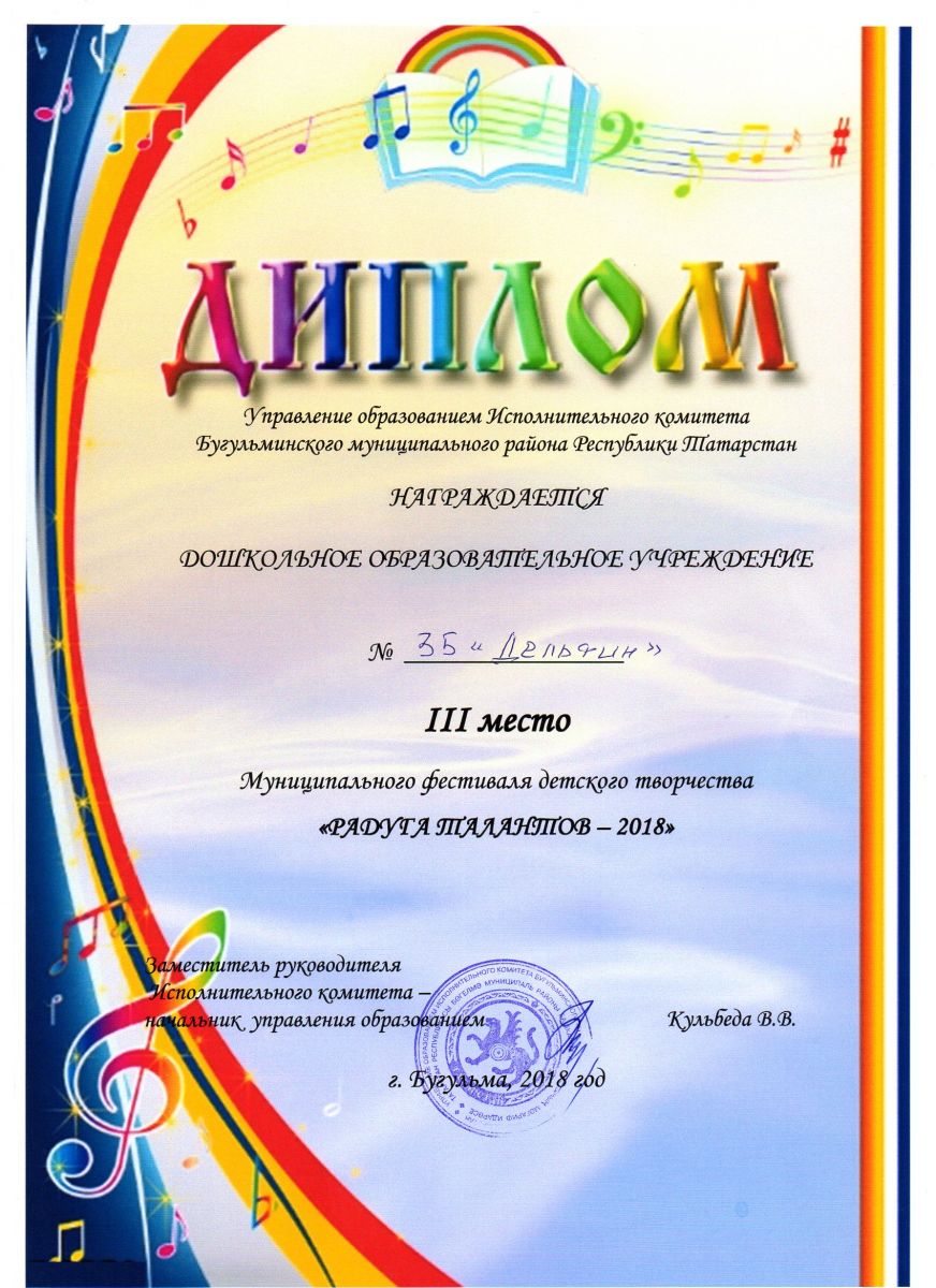 Муниципальное бюджетное дошкольное образовательное учреждение детский сад общеразвивающего вида №35 «Дельфин» Бугульминского муниципального района Республики Татарстан/ Татарстан Республикасы Бөгелмә муниципаль берәмлеге мәктәпкәчә белем бирү муниципаль бюджет учреждениесенең балаларны һәрьяктан тәрбияләп үстерү буенча бер яисә берничә өстенлекле юнәлештәге 35нче “Дельфин” балалар бакчасы