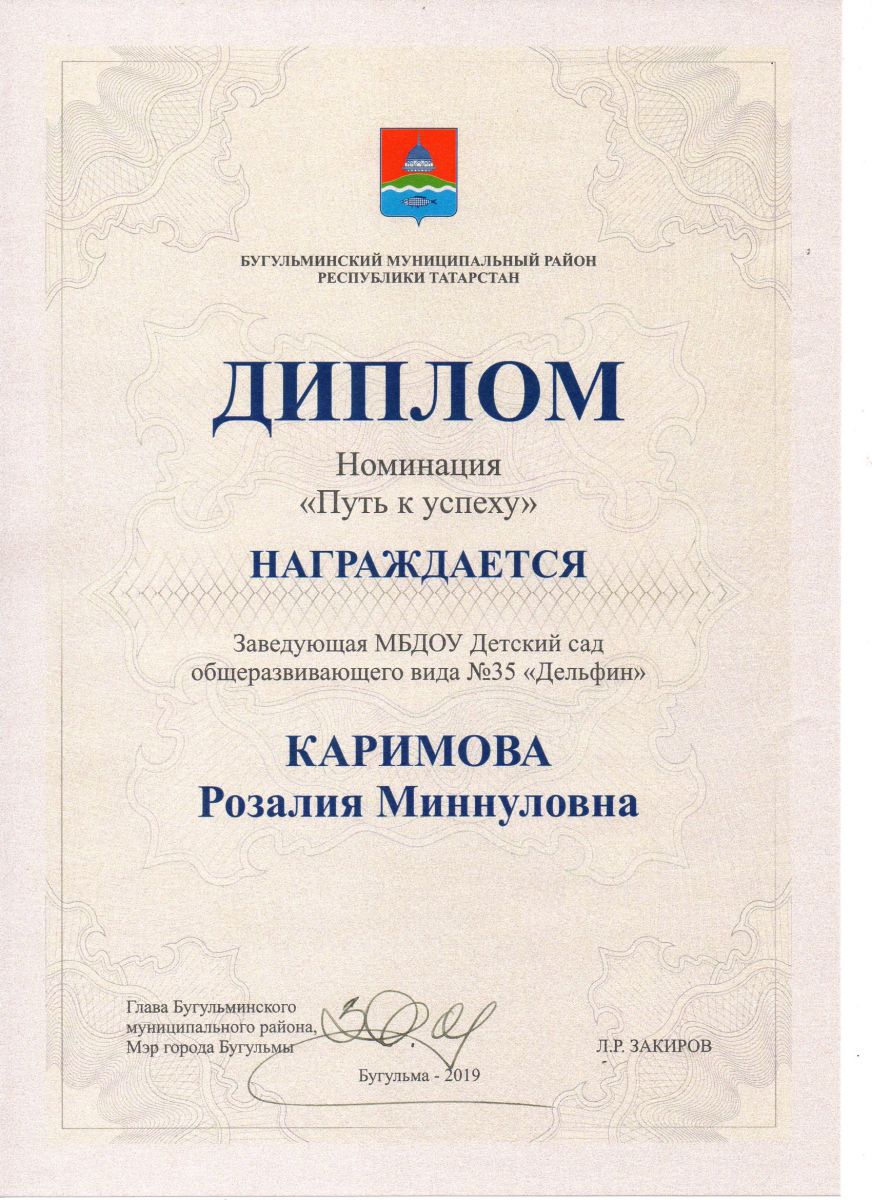 В 2019 году её были удостоены 11 бугульминцев в семи номинациях, в том числе заведующая детским садом № 35 Каримова Розалия Миннуловна в номинации "Путь к успеху".