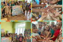 Дошколята с большим интересом, заинтересованно смотрели фильмы о китах и дельфинах. Затем приняли участие в онлайн-квизе, из которого узнали особенности каждого морского животного, находили сходства и отличия, а так же своими руками сделали акционный баннер «Спасем китов и дельфинов». В качестве приза за участие ребята получили в подарок настоящие морские ракушкиМенә 6 нчы һәм 10 нчы өлкән төркемнәр балалары ел саен 23 июльдә билгеләп үтелә торган Бөтендөнья китлар һәм дельфиннар көне белән таныштылар.