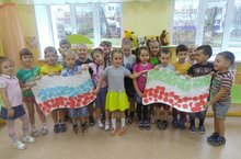 6 ноября в Республике Татарстан отмечается государственный праздник – День Конституции Республики Татарстан. В старшей татарской группе № 10 проведена организованная образовательная деятельность -аппликация "Флаг России и Татарстана" в целях ознакомление воспитанников с символикой России и Татарстана и представлений о предстоящем празднике. Воспитанники составляли коллективную композицию из множества однородных элементов (цветков), заранее подготовленных детьми.