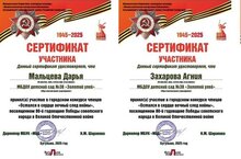 «Непоседа» ның 13нче өлкән төркеме тәрбияләнүчеләре Ушаков Родион, Мальцева Дарья, Сафина Асель, Захарова Агния совет халкының Бөек Ватан сугышында Җиңүенең еллыгына багышланган «Сугышның мәңгелек эзе калды» шәһәр укучылар конкурсында катнаштылар. Төркем тәрбиячеләре Чеснокова Светлана Анатольевна һәм Тимофеева Валентина Леонидовна мәктәпкәчә яшьтәге балаларны әзерләгәннәре өчен рәхмәт хатлары алдылар. -