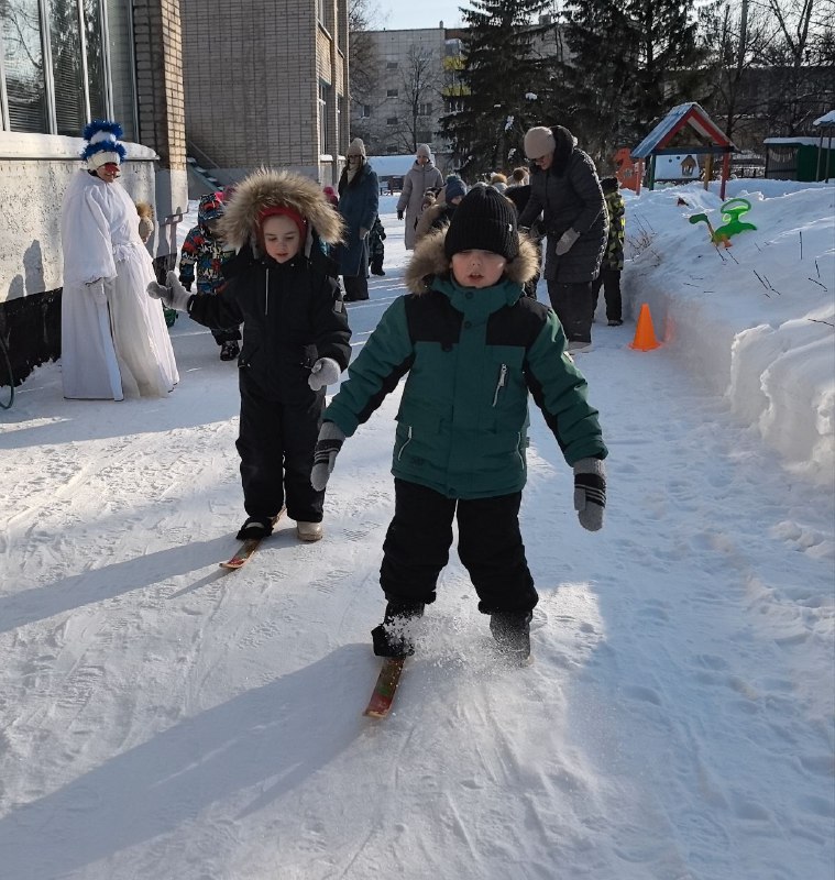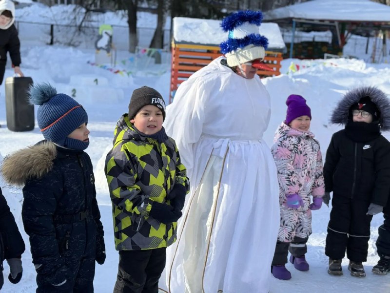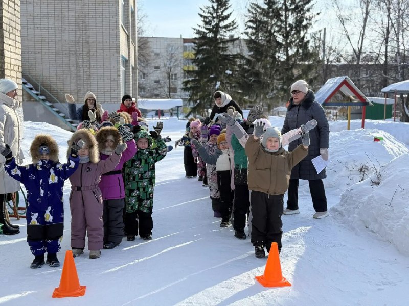На спортивной площадке царили радостная атмосфера, смех, азарт и доброжелательность. Дети с восторгом поддерживали друг друга, создавая по‑настоящему праздничный настрой.Программа соревнований включала разнообразные зимние эстафеты и задания, адаптированные для дошкольного возраста: