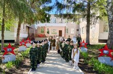 С центрального входа всех встречает выставка- вернисаж «Великой победе посвящается» и информационные баннеры «Дети войны», «Великие полководцы». Вдоль дорожки расположилась Аллея звезд к кадрами, на которых изображены города-герои. «Окна Победы» смотрят на всех праздничным маем.
