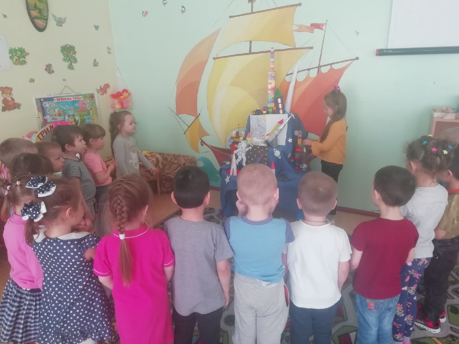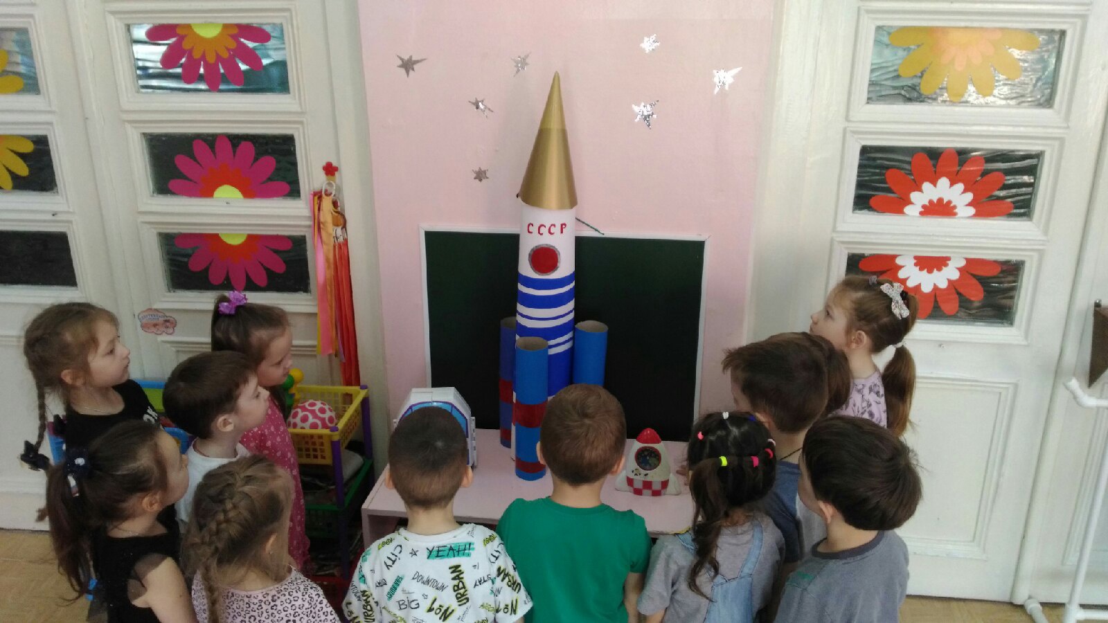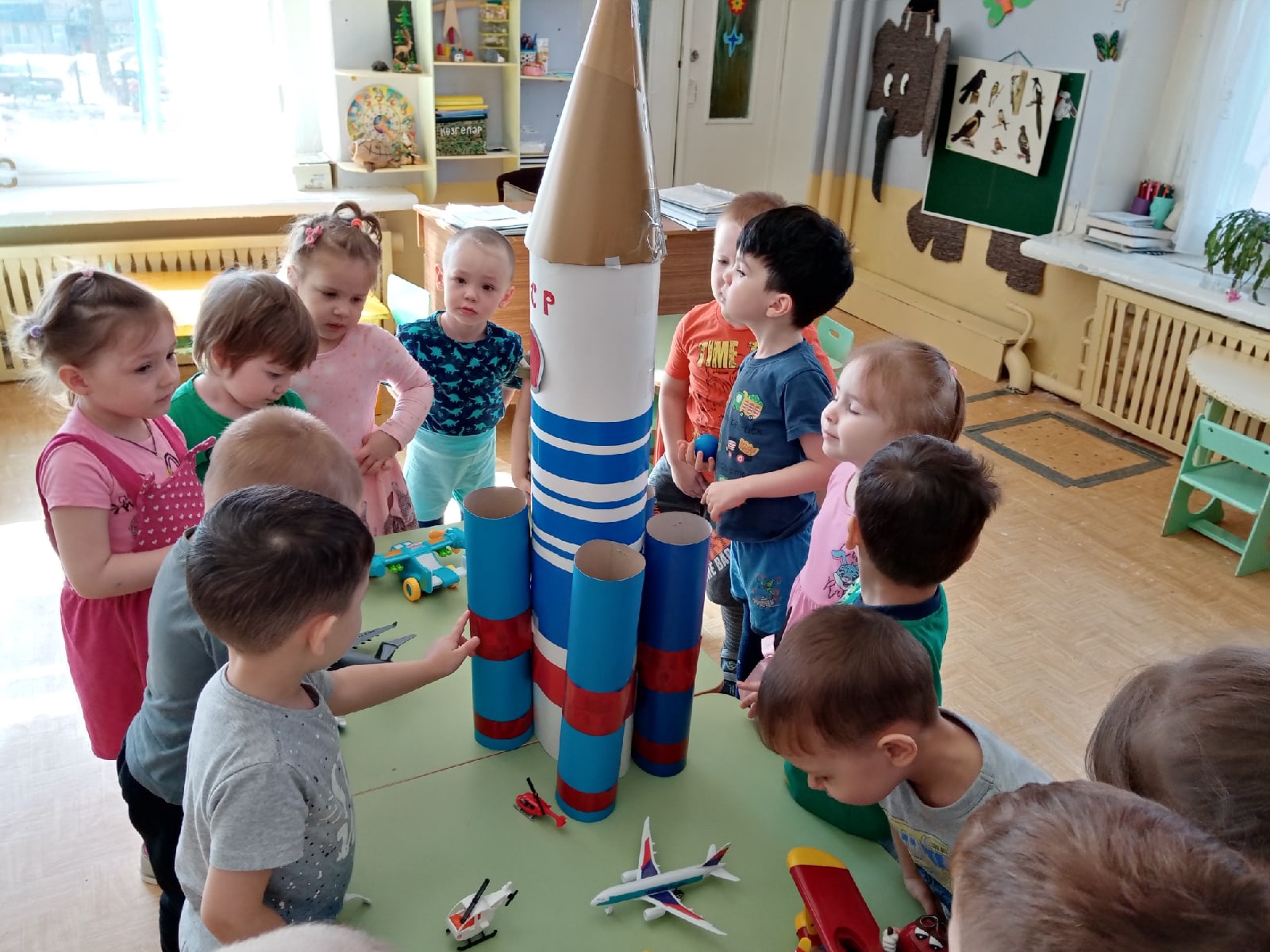 Завершилась тематическая неделя "Неделя авиации и космонавтики". В беседах, на занятиях дети узнали много нового: про Вселенную, планеты, о первых собаках-путешественниках в Космос (Белке и Стрелке), первом человеке-космонавте Ю. А. Гагарине.
