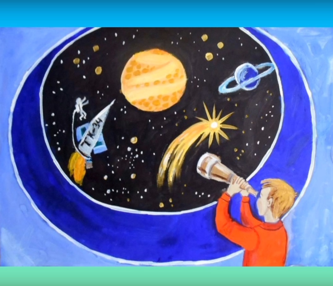 На занятии по рисованию "Загадочный мир Космоса" дети узнали о Вселенной и запечатлели её в своих рисунках.