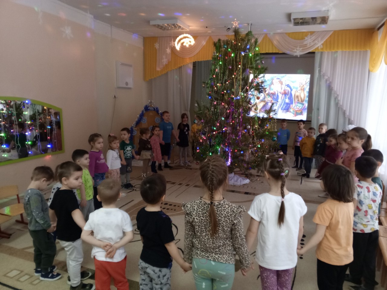 На протяжении многих лет в нашем детском саду существует красивая добрая традиция, как логическое завершение новогодних праздников, проводить развлечение «Прощание с новогодней ёлочкой», где дети ещё раз встречаются с ёлочкой-красавицей: поют, танцуют, играют в любимые игры, читают стихи.