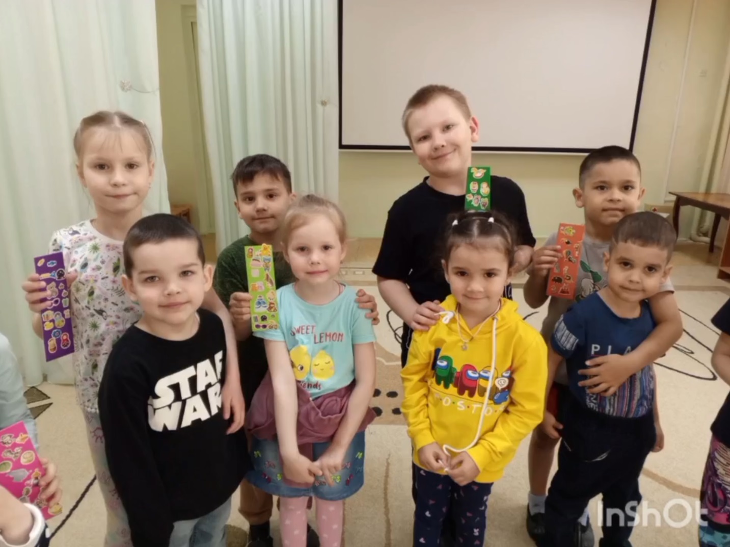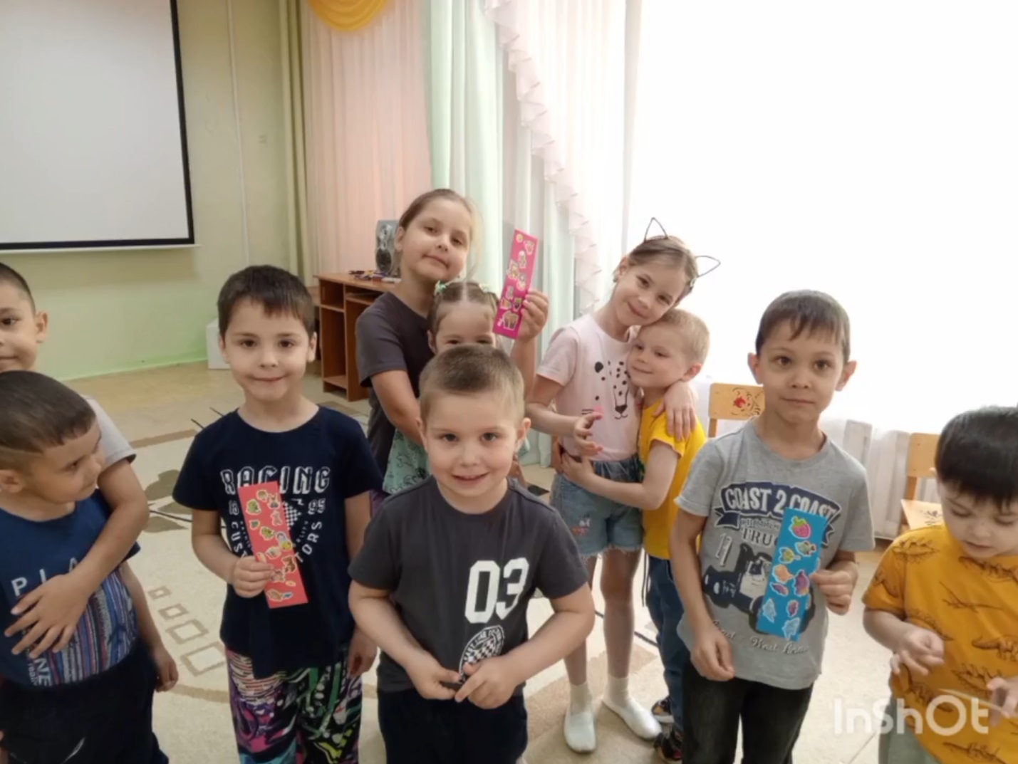 "Весёлые ребята" решили поздравить наших выпускников — будущих первоклассников, и сделали закладки своими руками. Они были украшены весёлыми наклейками в виде разных игрушек, как напоминание о времени, проведённого в детском саду. Мы уверены, что этот маленький подарок станет для первоклассников верным спутником в их учебном пути и будет напоминать о том, как важно открывать новые горизонты через книги. (Смотреть видео!)