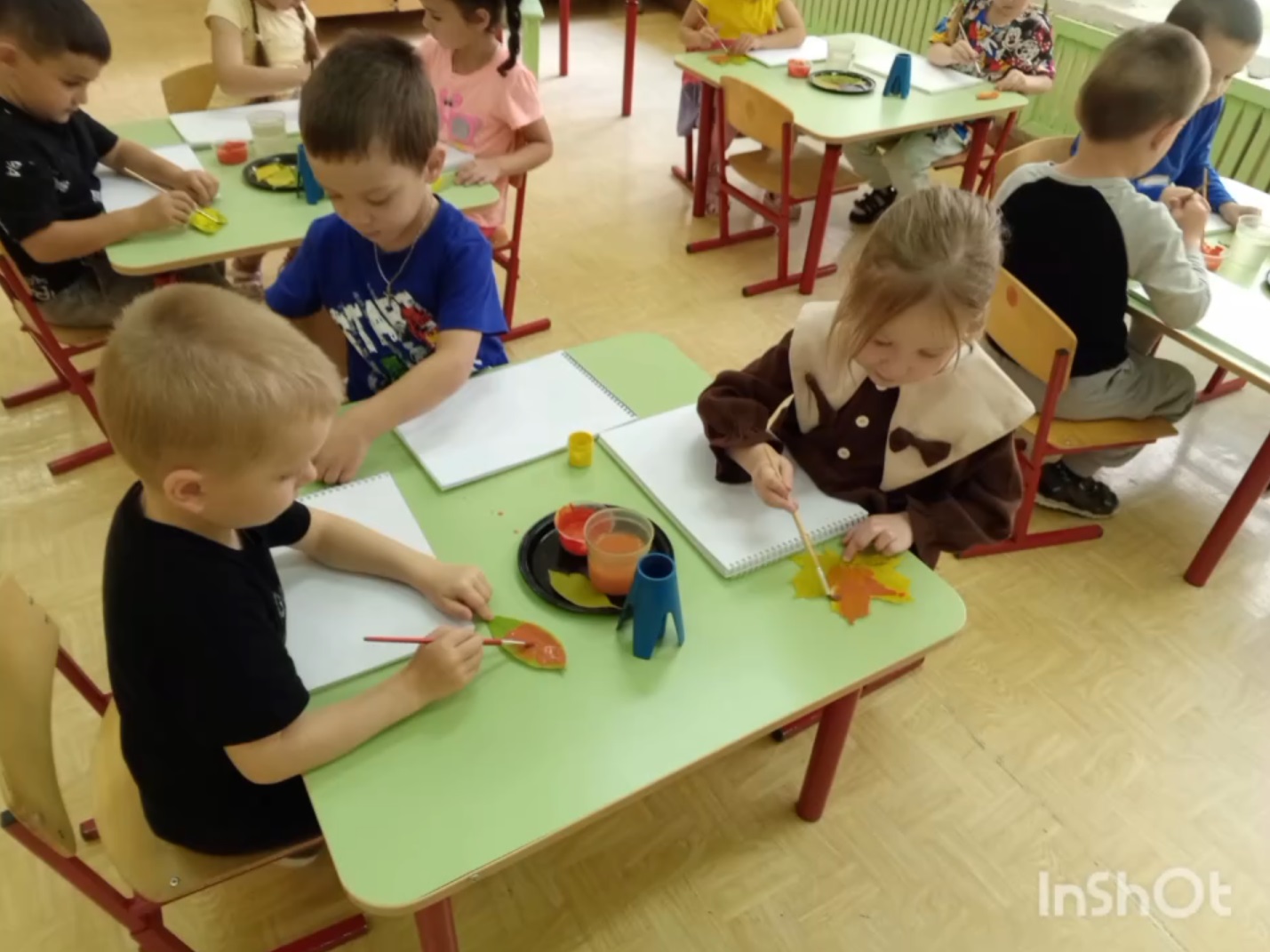 Чтобы воспитать в ребёнке чувство прекрасного, нужно научить его видеть и создавать эту красоту своими руками. Тематическая неделя помогает детям обогатить представления о видах искусства, найти творческое самовыражение. Деятельность дошкольников по рисованию должна стать встречей с прекрасным: природой, человеком, миром искусства. Наши "Весёлые Ребята " очень любят рисовать. Сегодня они познакомились с новым видом нетрадиционной техники рисования "оттиск, отпечаток листьями", который позволяет получить интересную фактуру изображения с помощью красок. В этой технике дошкольники использовали натуральные листья деревьев, собранные на прогулке. Ребята творчески подошли к этой работе и у них получился красивый осенний листопад.