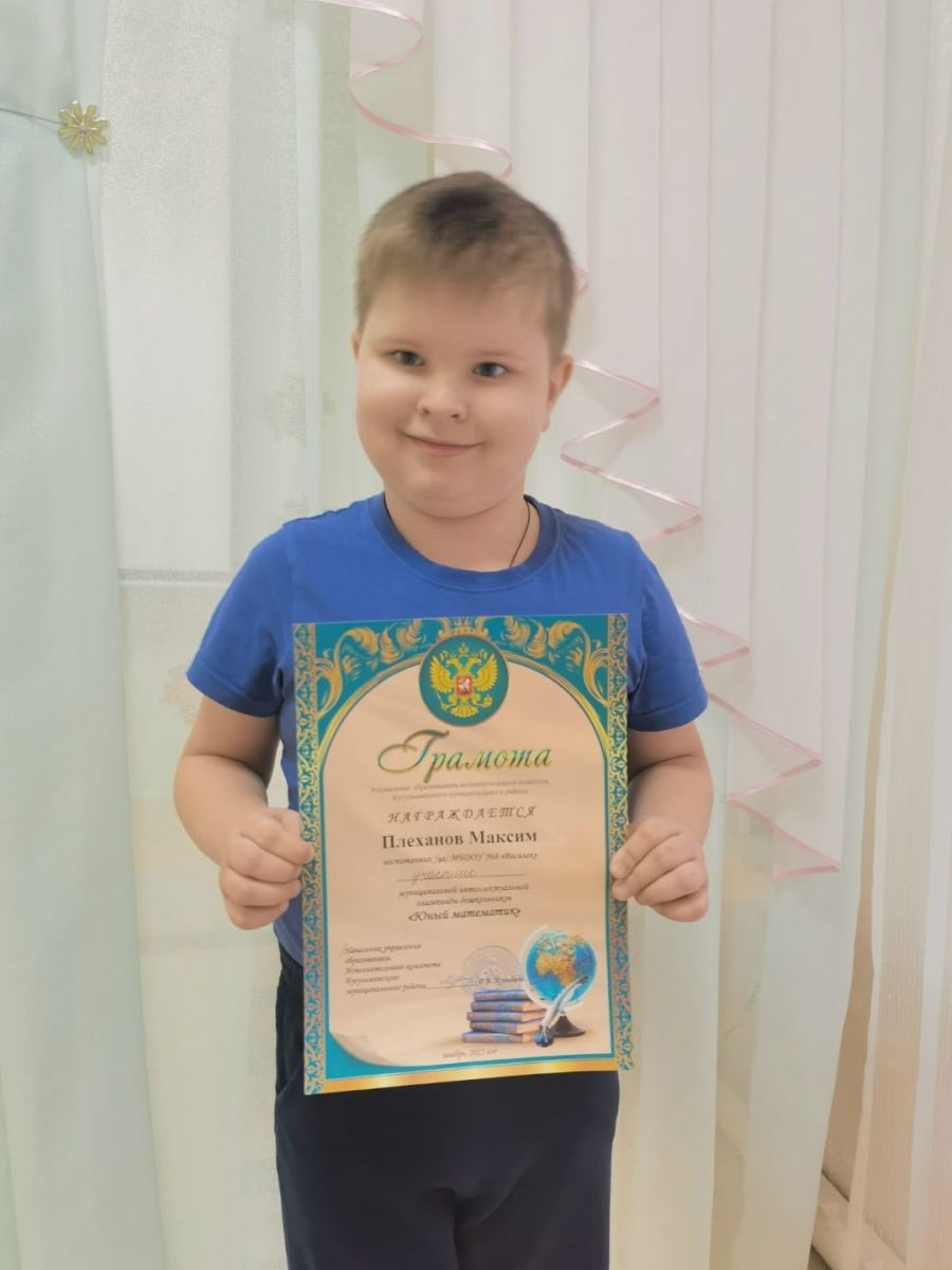 5 ноября на базе прогимназии № 14 "Журавушка" прошла муниципальная очная интеллектуальная олимпиада среди дошкольников "Юный математик". В олимпиаде приняли участие 39 детских садов: дети, которые стали победителями математических состязаний в своих детских садах. Честь нашего "Василька" защищал воспитанник подготовительной к школе группы "Ромашка" — Плеханов Максим. Он достойно прошёл все испытания ! ???? От всей души поздравляем Максима! Желаем ему удачи и новых побед! ????????