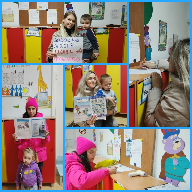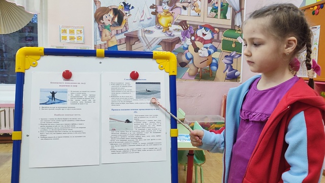 В детском саду № 8 "Василек" проходит акция "Осторожно: тонкий лёд!" Родители и дети ознакомились с правилами поведения на водных объектах в осенний период. Ребята в беседе, наглядных картинках, из мультфильма "Тонкий лёд" узнали о безопасносном поведения и правилах оказания помощи. Родителям были вручены памятки "Береги свою жизнь!"
