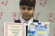 Гимназистка 5А класса Екатерина Крутякова стала победителем в муниципальном этапе республиканского профессионального конкурса творческих работ "Я горжусь своей Россией" за оригинальное воплощение замысла и творческий подход к работе.