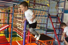 На такой 3D-площадке ребенок движется в трех плоскостях — не только вперед и назад, но и по диагонали, вверх, вглубь, по лестнице, скатывается с наклонных поверхностей, карабкается по веревкам, пролезает в отверстия, прыгает на резинках и так далее. -