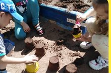 Сегодня прошёл день, посвящённый играм с песком. Полёт фантазии не знал предела: волшебные замки, куличи, торты, подземные раскопки. Идея творчества была так заразительна, что все ребята старались принять участие в игре с песком.