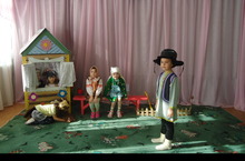Вниманию зрителей подготовительная к школе группа представила инсценировку на новый лад сказки "Кәҗә белән сарык"