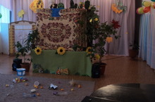 Вниманию детей был представлен кукольный театр на экологическую тему "Урман дуслары" (Друзья леса). Десные жители ёж и заяц пришли к другу медвежонку, чтобы позвать его поиграть. Но медвежонок заболел.Тогда друзья решили сделаать ему приятное и отправились на рыбалку.