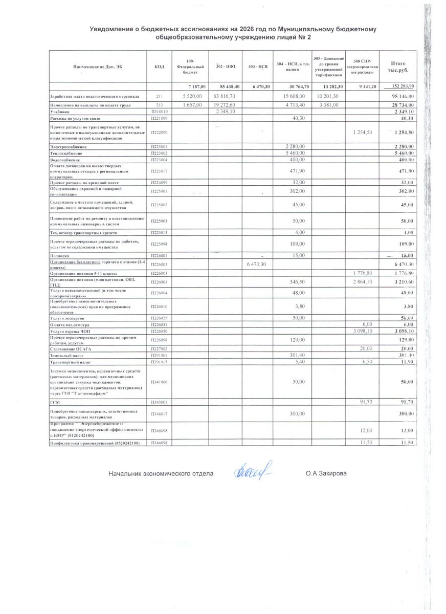 - Уведомление о бюджетных ассигнованиях на 2026 год