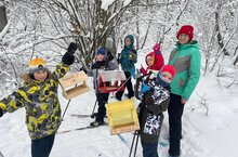 Вместе с родителями ребята изготовили 25 кормушек, развесили их на деревьях в лесу на лыжной базе и разложили корм для птиц. Теперь все желающие покататься на лыжах могут сделать доброе дело: насыпать семечек или пшена в кормушку.