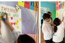 Сегодня в школе прошла акция "Гирлянда добрых дел", где каждый учащийся прикрепил сердечко с ообщением о том, какое доброе дело он совершил сегодня.