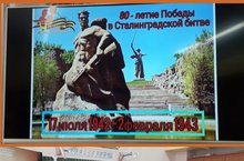 2 февраля 2023 года в День 80-летия Победы в Сталинградской битве для учащихся 3 класса проведён тематический классный час с Мультимедийным квестом о Сталинградской битве, о её значении в ходе Великой Отечественной войны. Ребята узнали, что Великая Отечественная война – это тяжелейшее испытание, выпавшее на долю всех жителей нашей страны. В ходе беседы, дети узнали о героической Сталинградской битве, о том, что эта битва переломила ход всей войны.