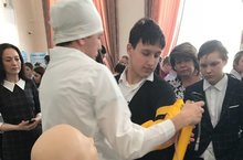 Для учащихся школ города учебные заведения юго-востока республики организовали выставки. Наше училище представляли студенты 2 курс специальности «Лечебное дело» Шабалин Алексей и Султанов Айнур. Они рассказали школьникам об истории училища, о специальностях, о требованиях к медицинской профессии. В процессе общения учащиеся сами попытались пеленать куклу, накладывать шину, измерять давление.