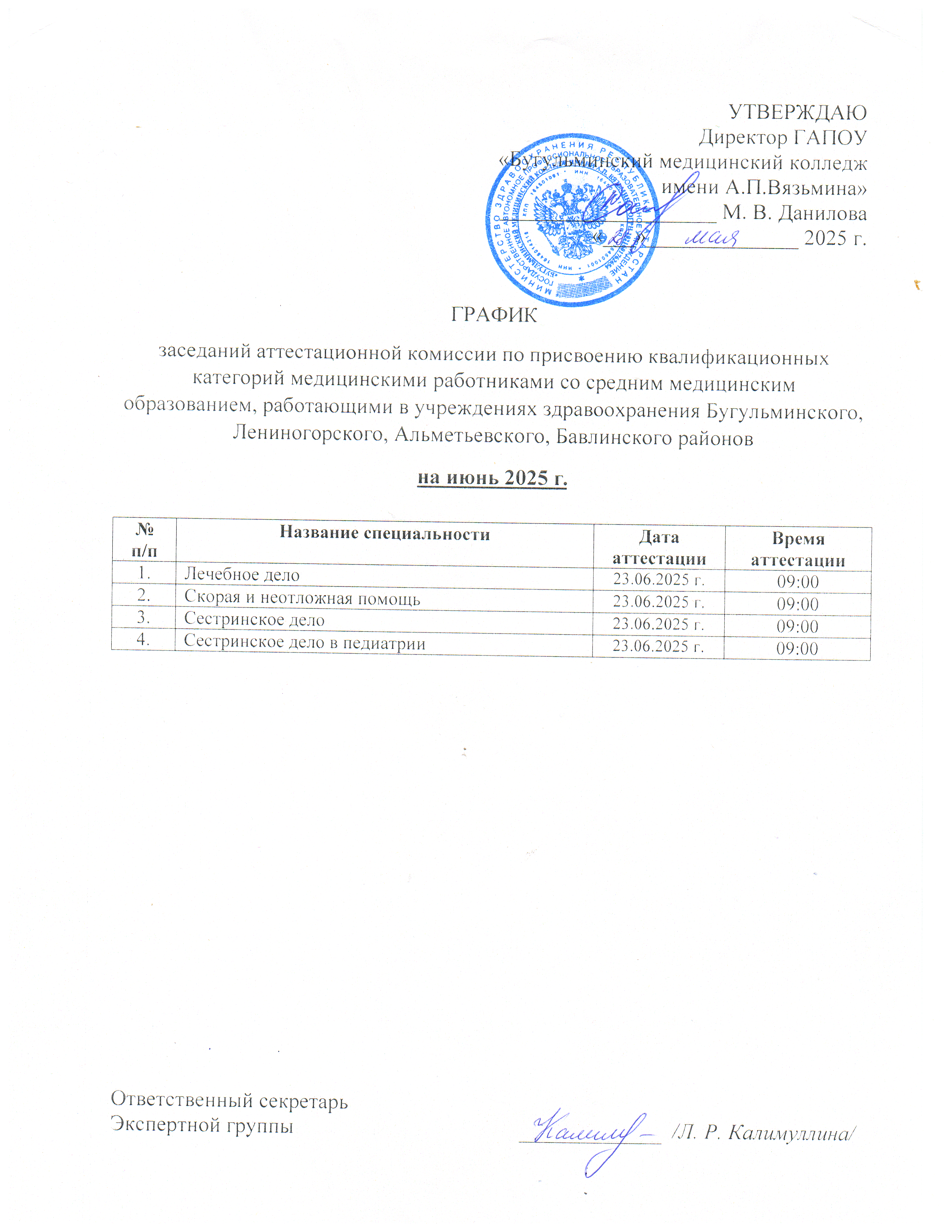 ГРАФИК заседаний аттестационной комиссии