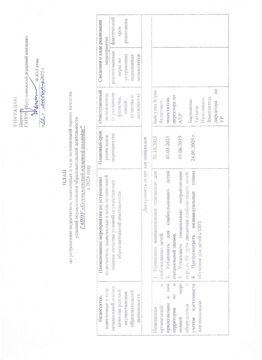 План создания комфортных условий для обучения инвалидов и лиц с ограниченными возможностями здоровья ГАПОУ БАК