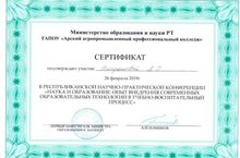 Республиканская научно-практическая конференция «Наука и образование: опыт внедрения современных образовательных технологий в учебно-воспитательный процесс» 26.02.2019